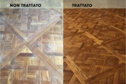 - Semplice applicazione: Corollino è facile da applicare, rendendo la manutenzione del parquet un processo semplice e veloce. La sua formula consente una stesura uniforme senza lasciare tracce o residui.